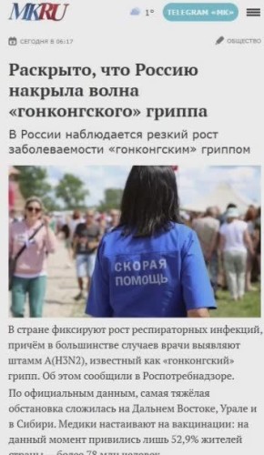 В России сейчас фиксируют резкий рост респираторных инфекций, чаще всего выявляют штамм А(H3N2) – тот самый «гонконгский» грипп.Вот и сбываетсяВсе, что пророчится