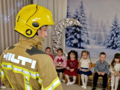 В гости к ребятам пришёл пожарный и напомнил об опасностях новогодних украшений — гирлянд, бенгальских огней и фейерверков. Любая неосторожность может вызвать пожар. Малыши быстро и уверенно отвечали на вопросы о пожарной безопасности: они знают номер...