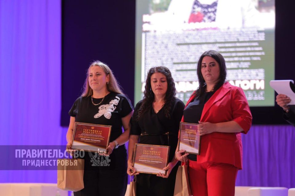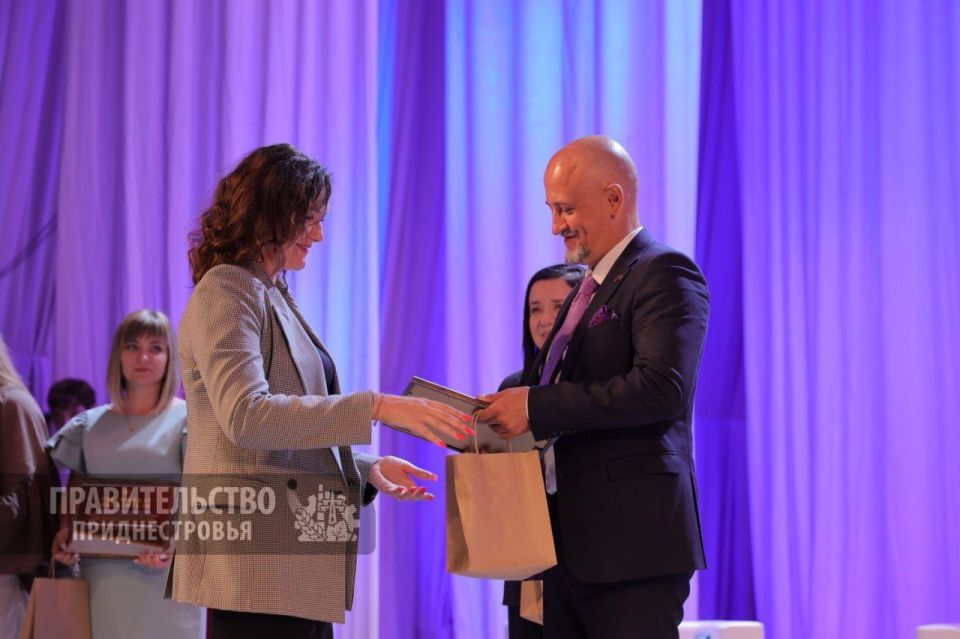 Сертификаты и памятные подарки вручили первый заместитель Председателя Правительства ПМР – министр экономического развития Сергей Оболоник и министр просвещения Светлана Иванишина.