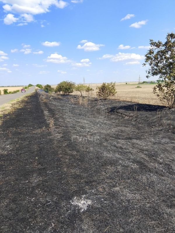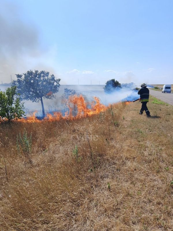 А это пожар неподалёку от села Бычок. Вдоль трассы загорелась сухая трава. Примерная площадь – 1500 квадратных метров. На месте работают бендерские огнеборцы.