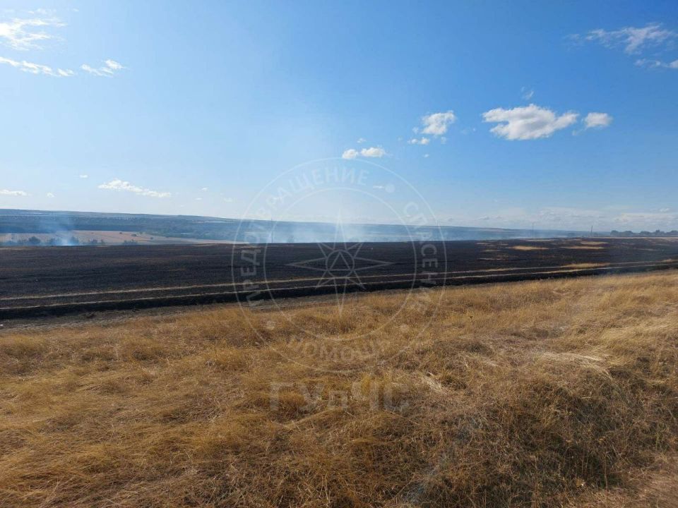 Днём, 24 августа, произошло возгорание мусора на несанкционированной свалке. Ветром огонь мгновенно перекинуло на пастбище. Рядом ферма, жилые дома и сосновый бор. Очевидцы вызвали пожарных.