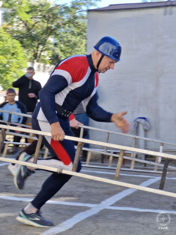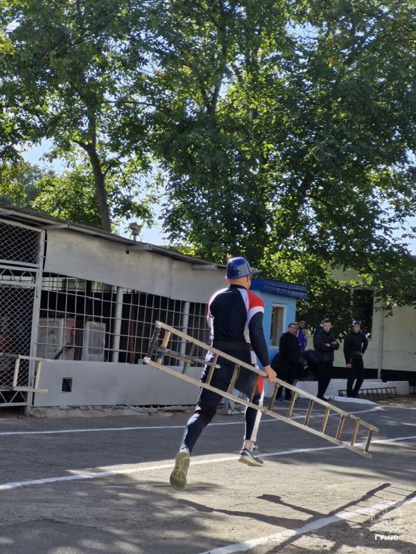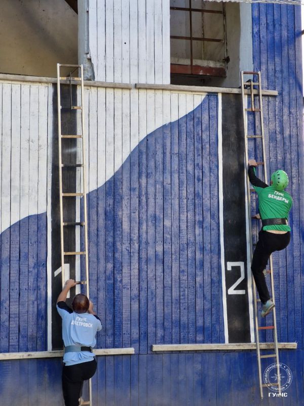 Так пожарные поднимаются  по штурмовой лестнице в окно четвертого этажа учебной башни