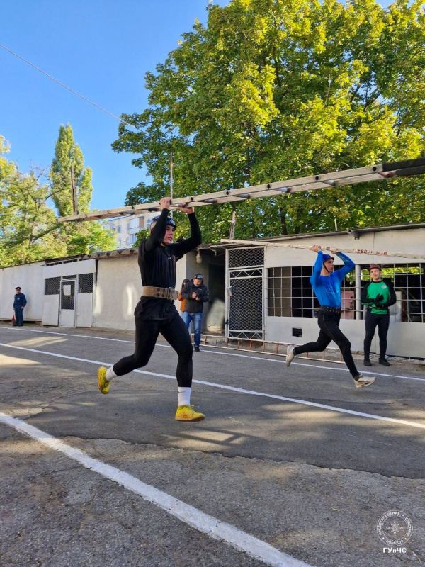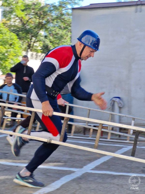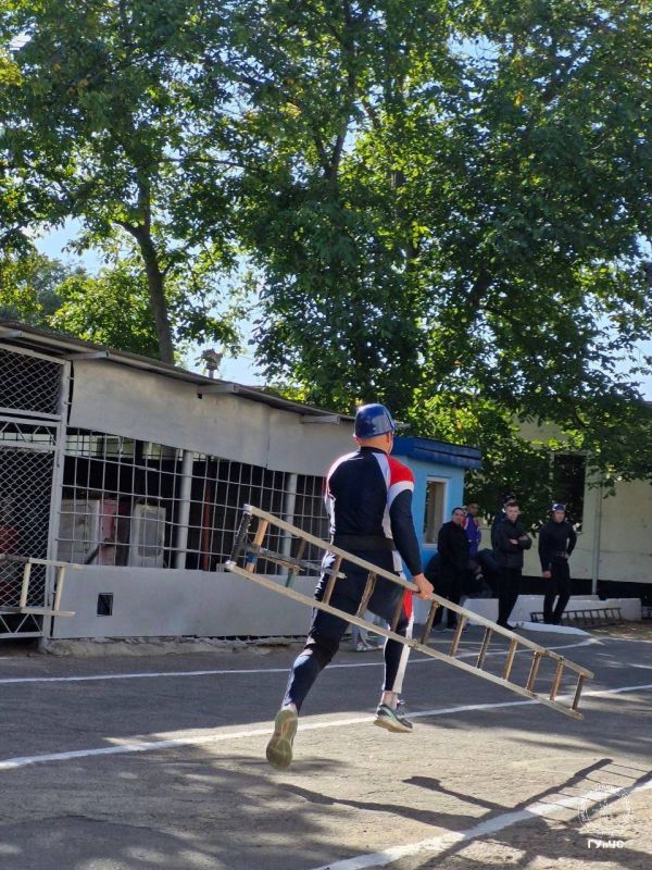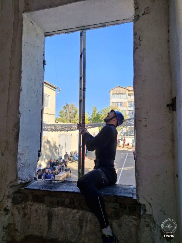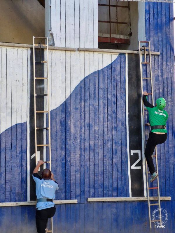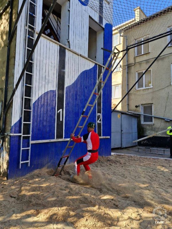 Так пожарные поднимаются по штурмовой лестнице в окно четвертого этажа учебной башни