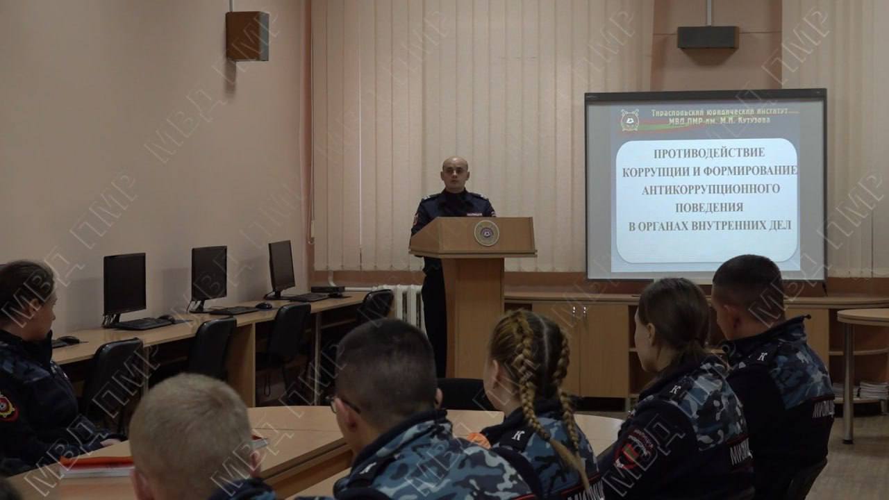 С первых дней преподаватели ТЮИ МВД ПМР формируют у курсантов и студентов отрицательное отношение к коррупции и экономическим преступлениям. Профессионалы объясняют, что такое коррупция и как с ней бороться, иллюстрируют рассказы примерами из богатой многолетней практики.
