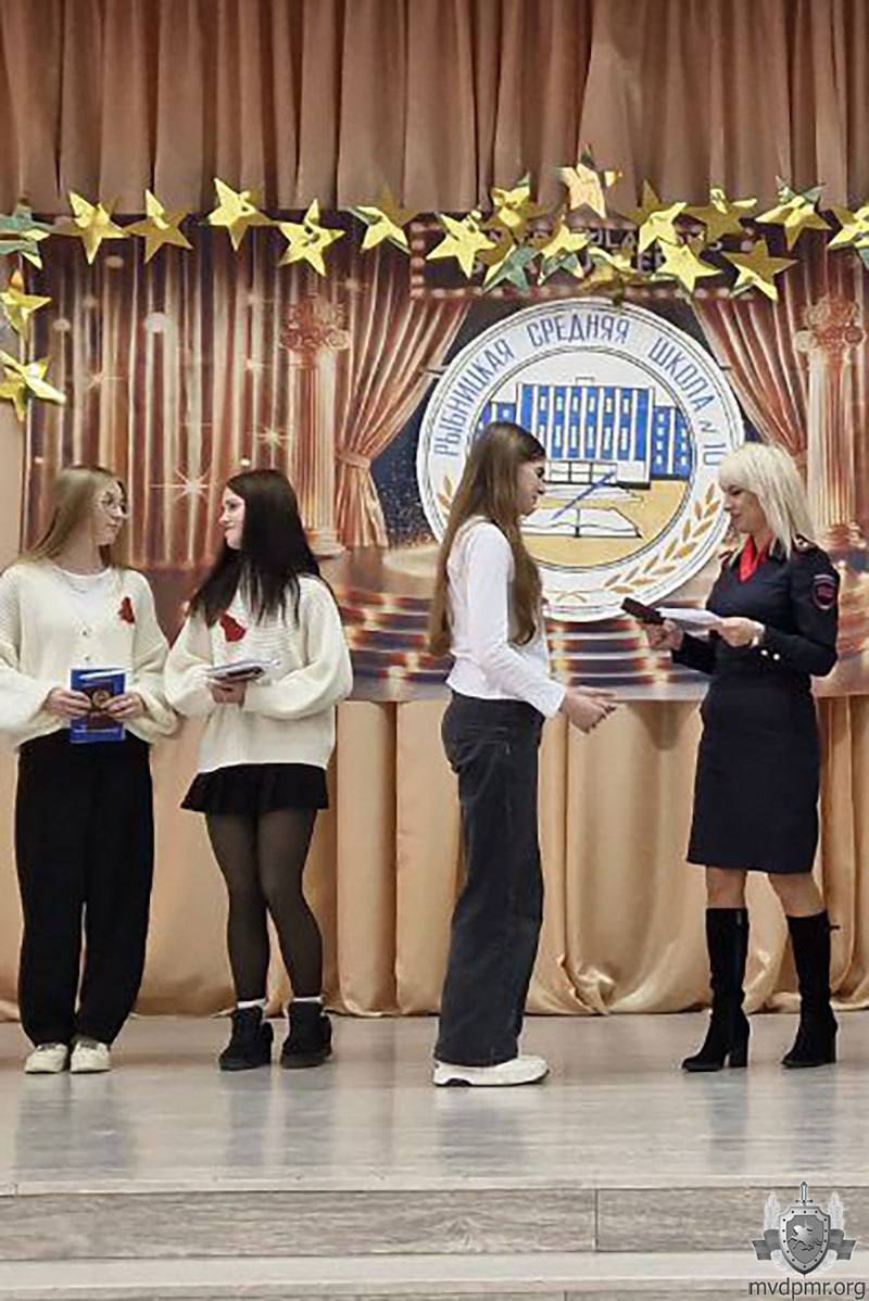 Документ, удостоверяющий личность и подтверждающий гражданство Приднестровья, юноше и пяти девушкам вручила заместитель начальника паспортного отделения г. Рыбница. Молодым людям подарили памятные презенты – ручки и блокноты с символикой МВД.