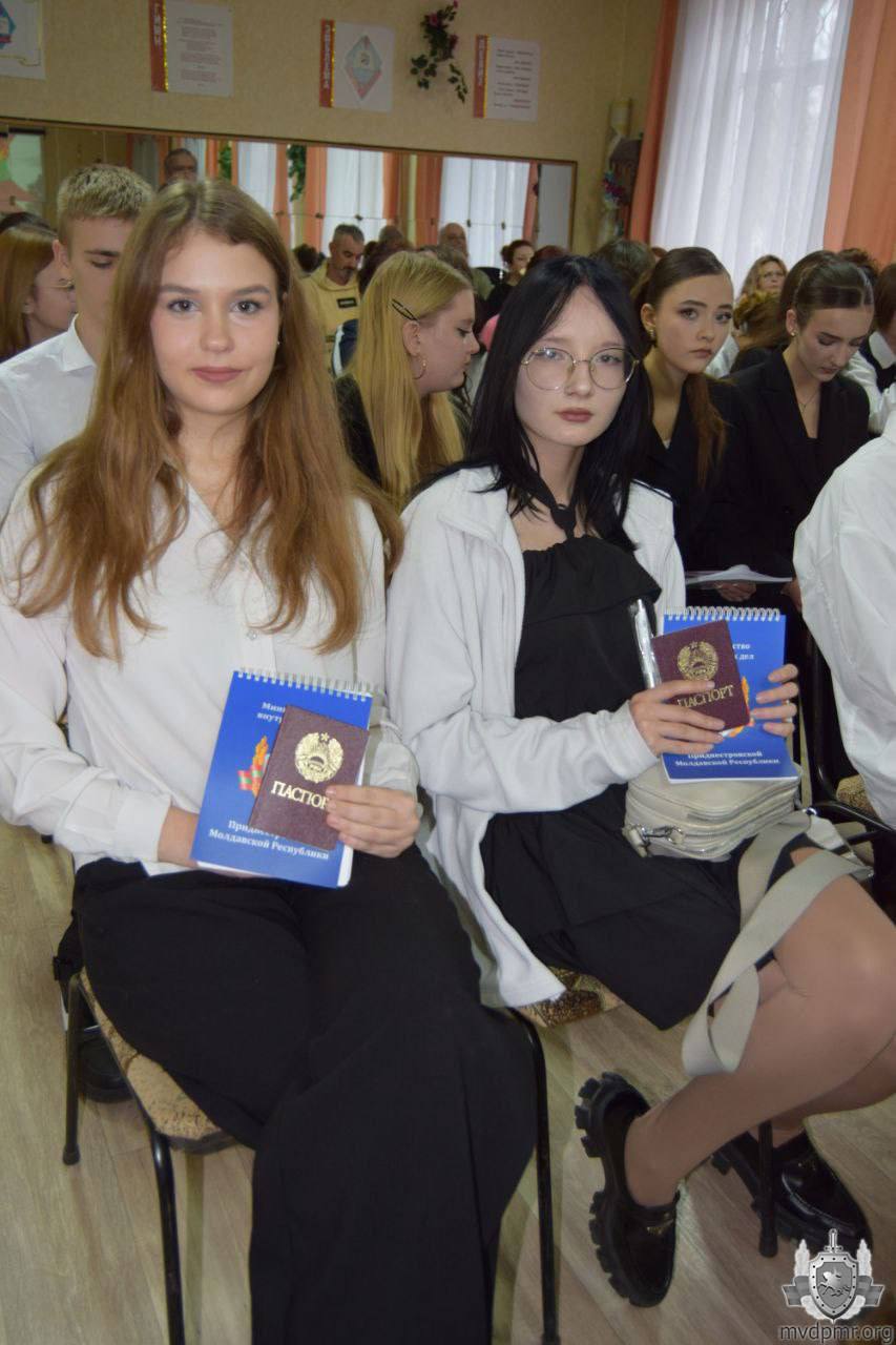 Начальник паспортного отдела подчеркнула особую значимость этого события для ребят, отметила, что получение паспорта – важный юридический акт, символизирующий начало нового этапа в жизни гражданина Приднестровской Молдавской Республики. Офицер также напомнила юным обладателям паспорта об ответственном отношении к удостоверению личности и пожелала стать достойными сынами и дочерями Республики.