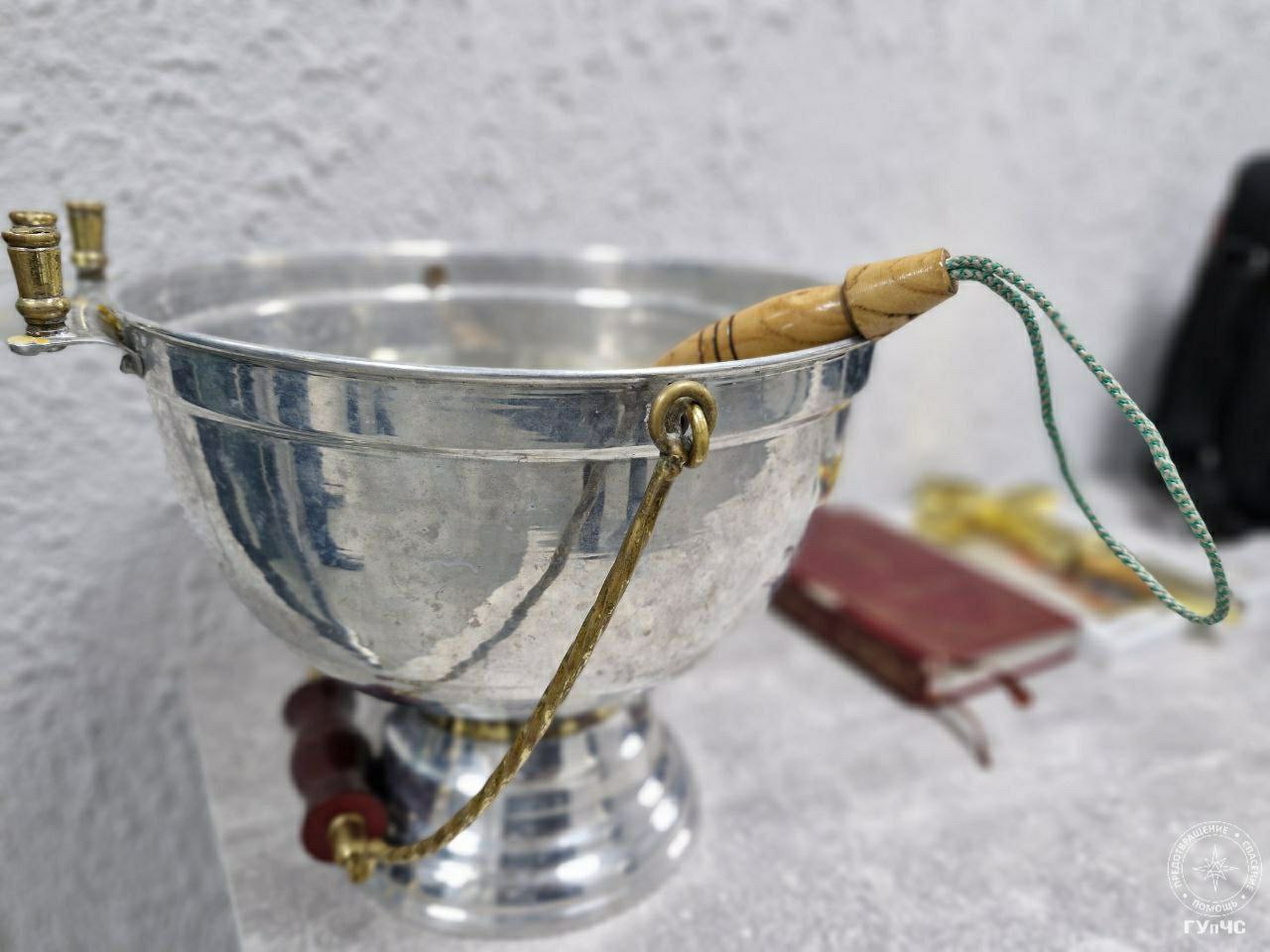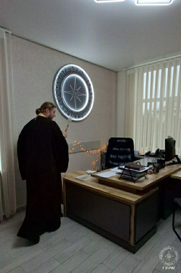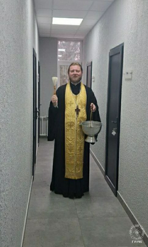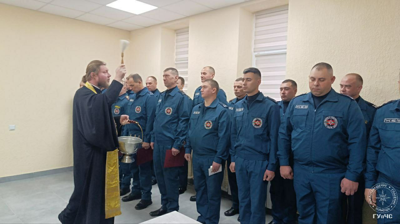 Протоиерей Сергей Вербицкий поздравил с предстоящим Днём спасателя, пожелал Божией помощи в несении службы, крепкого здоровья и успехов в делах и вручил икону "Покров Пресвятой Богородицы".