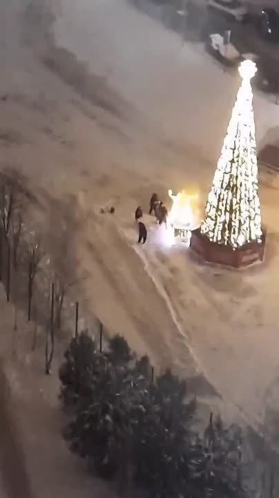 Компания решила устроить праздничный салют, но всё закончилось возгоранием инсталляции с санями и оленями.