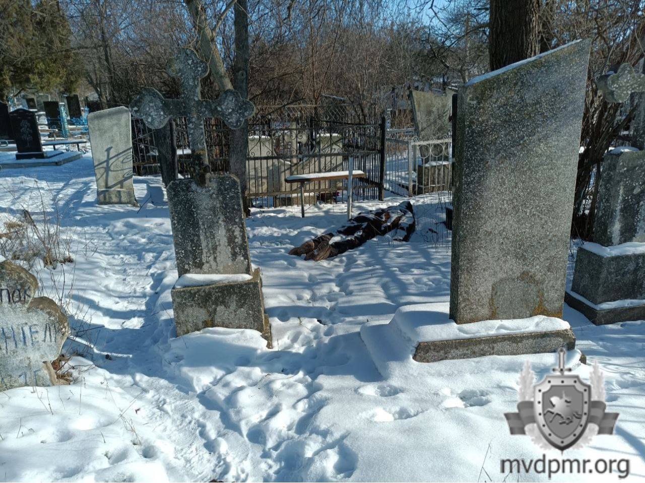 В Дубоссарах на территории кладбища 19 января горожане увидели лежащего на земле человека, припорошенного снегом. Сотрудники милиции установили личность погибшего: 45-летний мужчина ранее не раз доставлялся в РОВД в состоянии алкогольного опьянения.