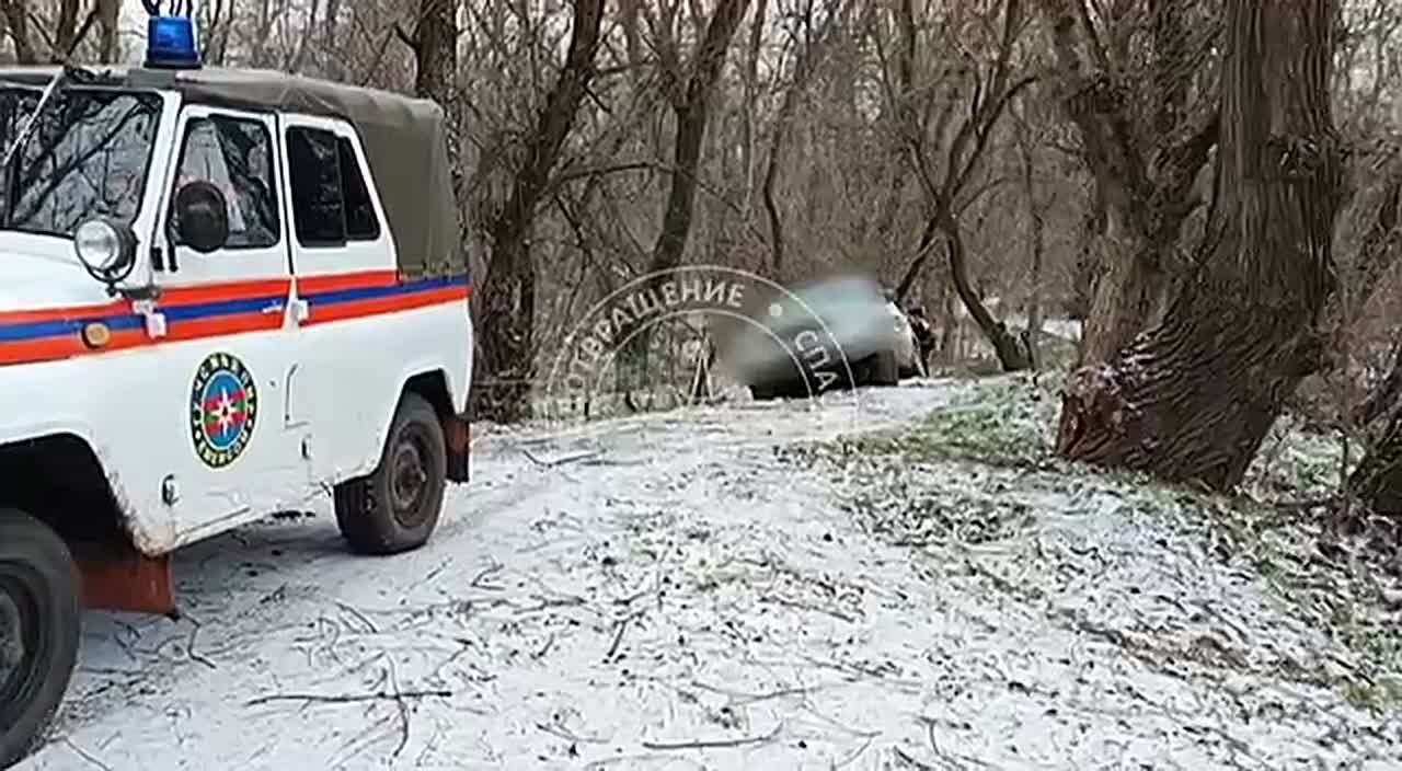 Прибывшие на место спасатели подсоединили трос к служебному УАЗу и вытянули внедорожник на дорогу.