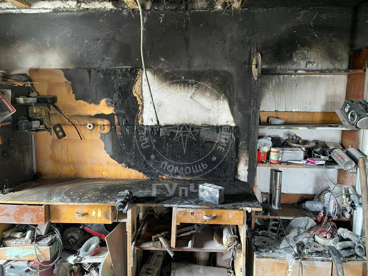 Огнеборцы оперативно прибыли на место и за 10 минут ликвидировали возгорание площадью 5 квадратных метров. В результате пожара повреждены аккумулятор, стол и потолок гаража.