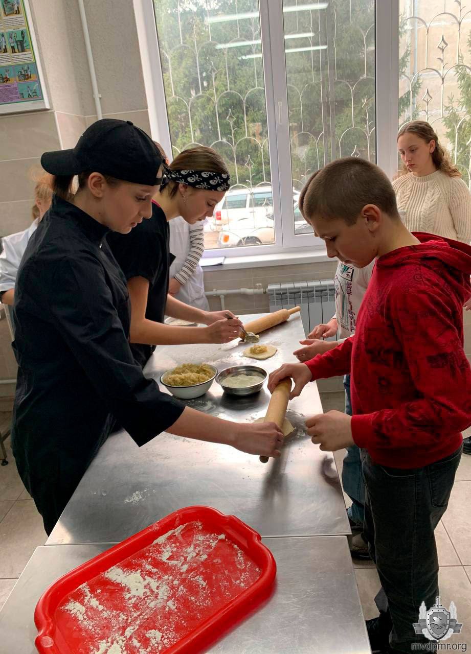 Ежегодно в техникуме устраивают для макаренцев мастер-классы. На этот раз гости месили тесто, учились чувствовать его консистенцию, ловко работать с ним. Готовили начинку из капусты – одну из самых любимых. Потом творили и выпекали сами пирожки. В прошлые визиты ребята делали хворост и блинчики.