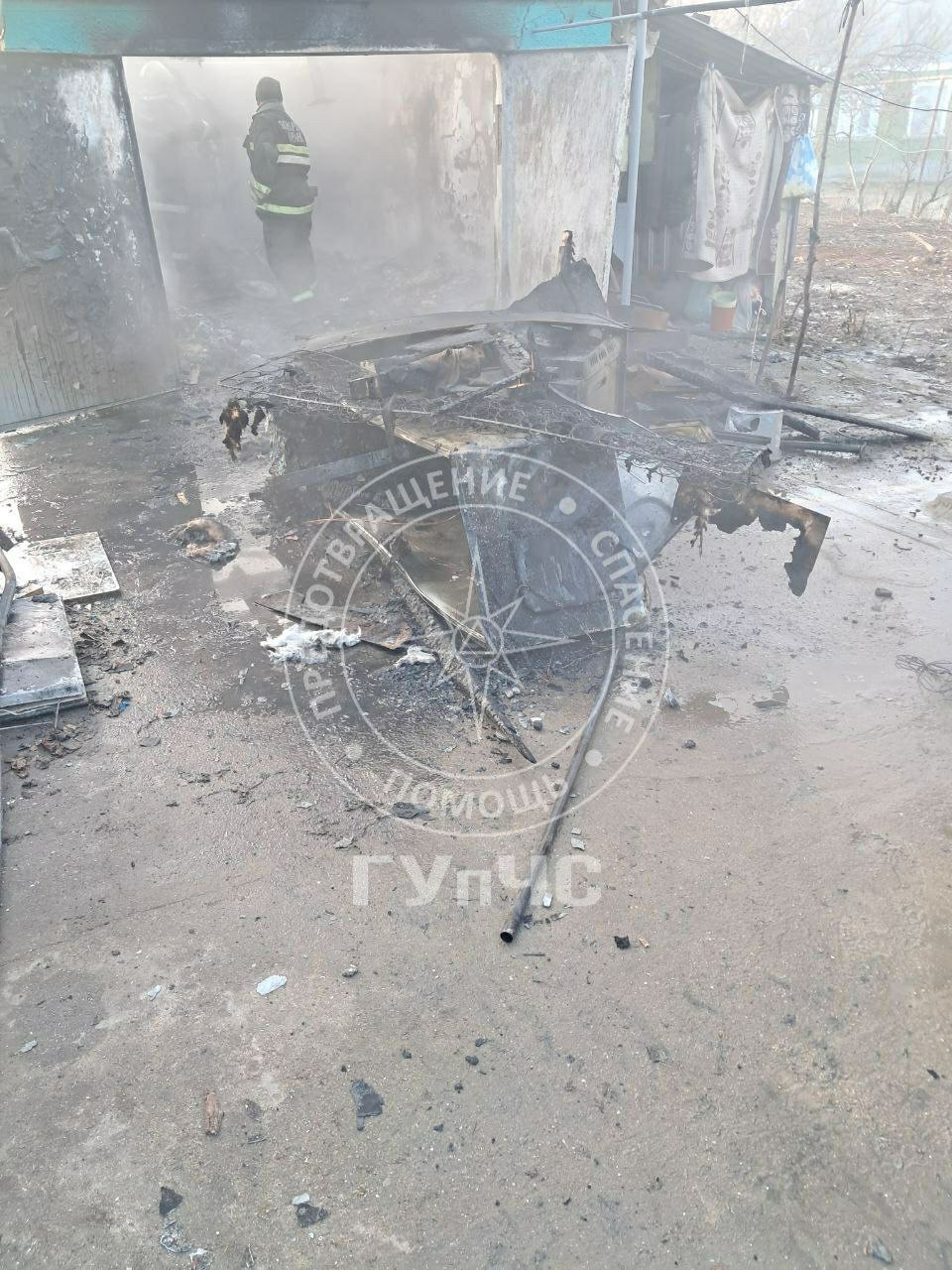 Гараж сгорел полностью. Причину пожара выясняют инспекторы Госпожнадзора.