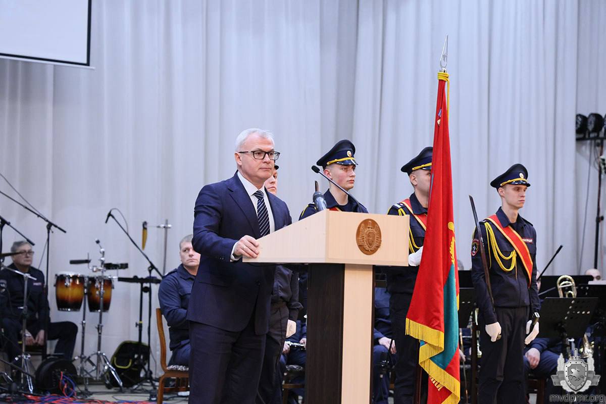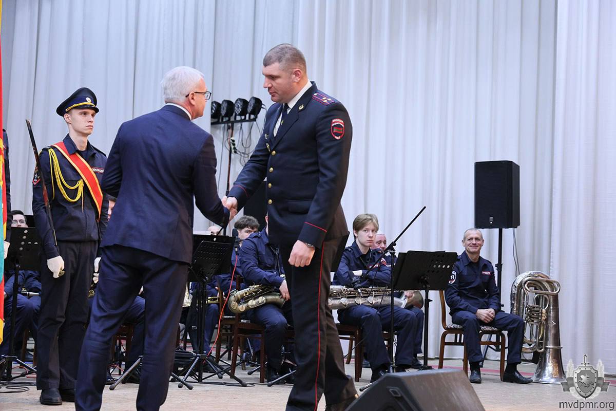 От имени Президента Приднестровья Вадима Красносельского приветственный адрес зачитал вице-премьер Виталий Нягу: «МВД остаётся важнейшей опорой приднестровской государственности, надёжным гарантом правопорядка, общественной безопасности и законности.