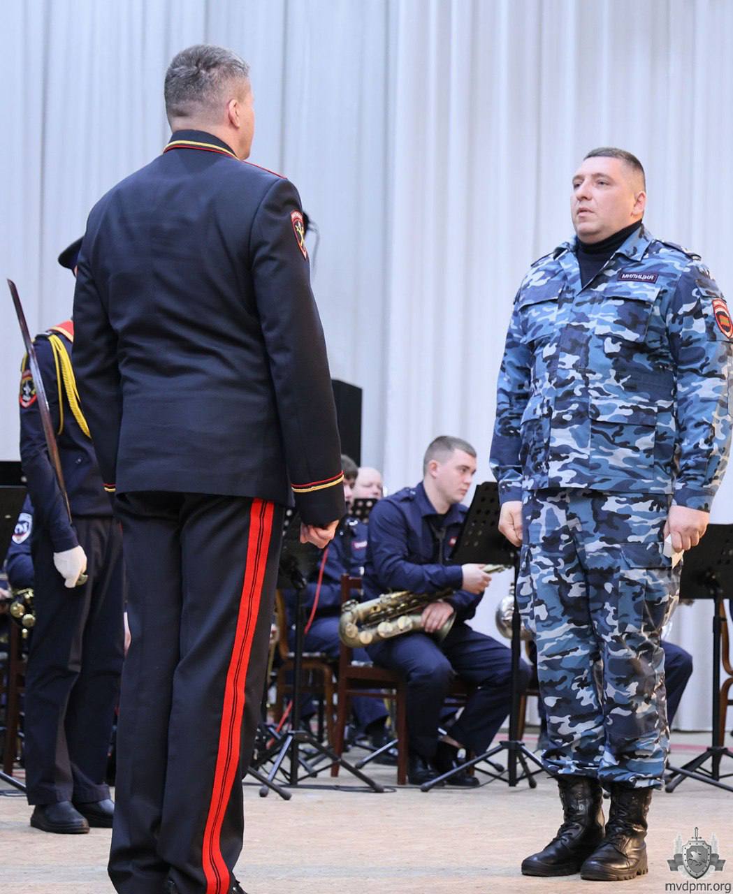 Заместитель председателя Правительства ПМР вручил отличившимся сотрудникам различных подразделений МВД государственные награды.