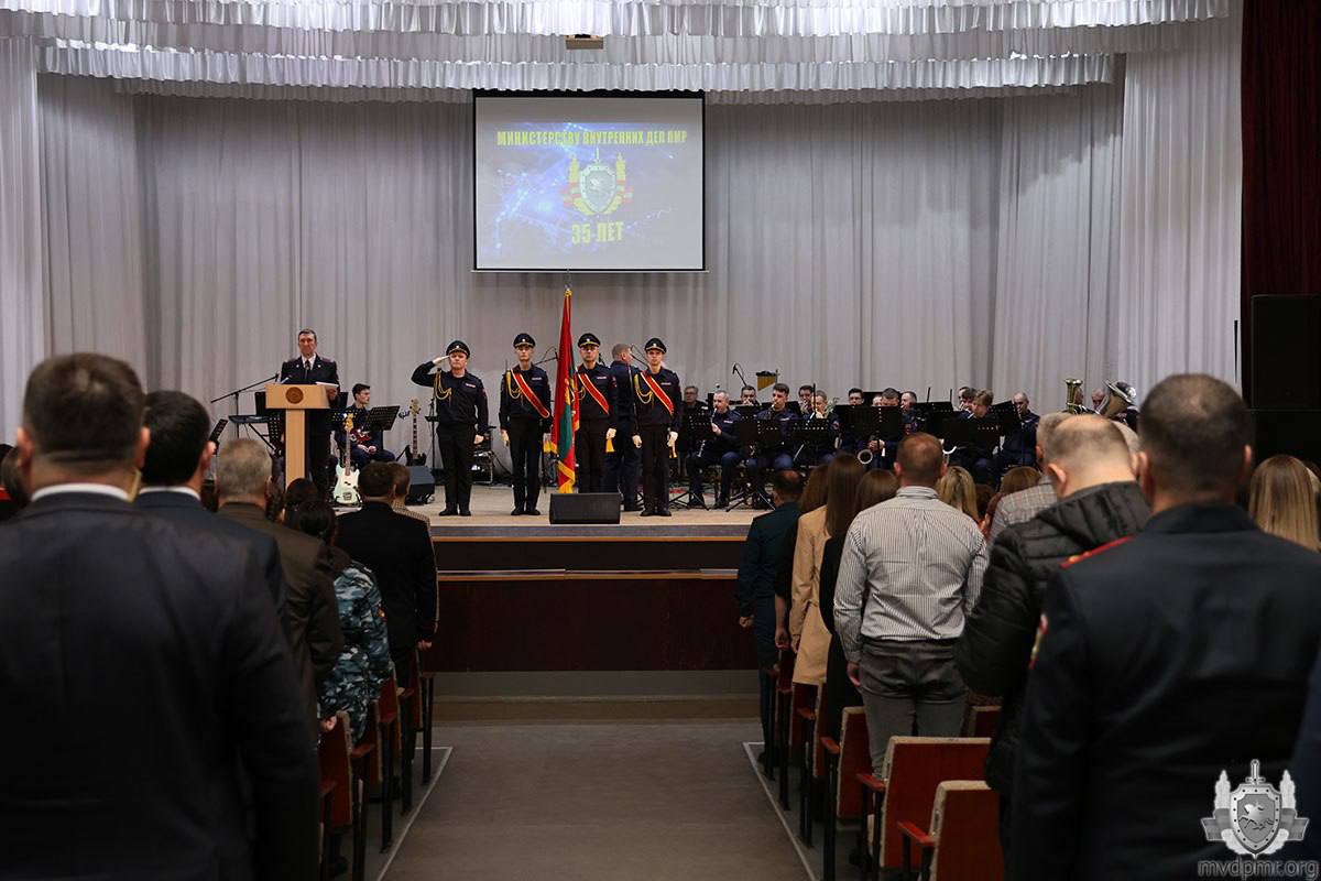 С приветственным словом к присутствовавшим обратился и.о. министра внутренних дел ПМР Андрей Барабаш: «Мы отмечаем 35-летие образования МВД. Это важная веха в истории государства, символ преемственности поколений, верности присяге и служебному долгу. Министерство внутренних дел сегодня способно на высоком уровне реагировать на вызовы времени. Мы уделяем большое внимание цифровизации процессов, повышению открытости и укреплению доверия общества. Но за любыми достижениями стоят люди – сотрудники, которые ежедневно, порой рискуя жизнью, обеспечивают безопасность граждан. Уверен, что и впредь коллектив МВД будет с честью выполнять поставленные задачи, укрепляя правопорядок и общественную стабильность. Наш долг – служить обществу честно, профессионально и с самоотдачей».