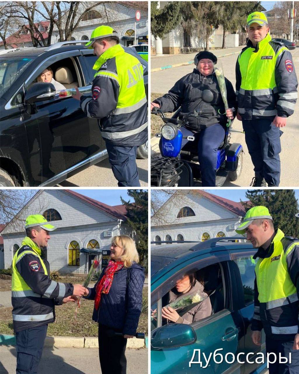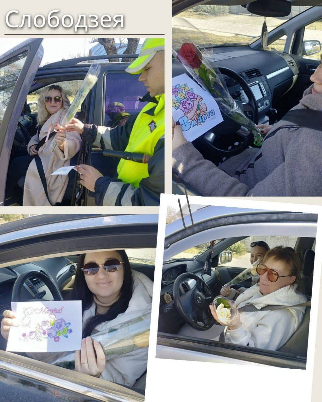 В Приднестровье в Международный женский день представительниц прекрасной половины человечества, которые были за рулём, поздравили с праздником.
