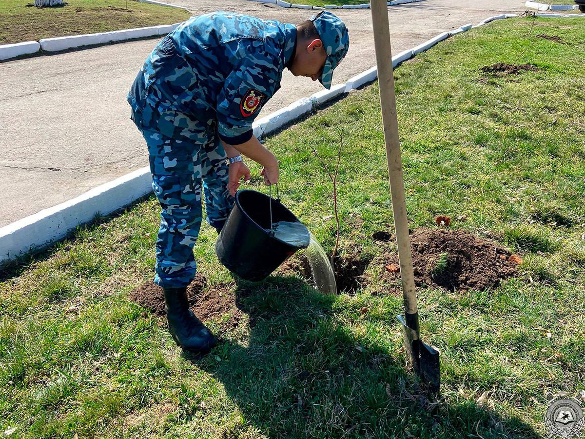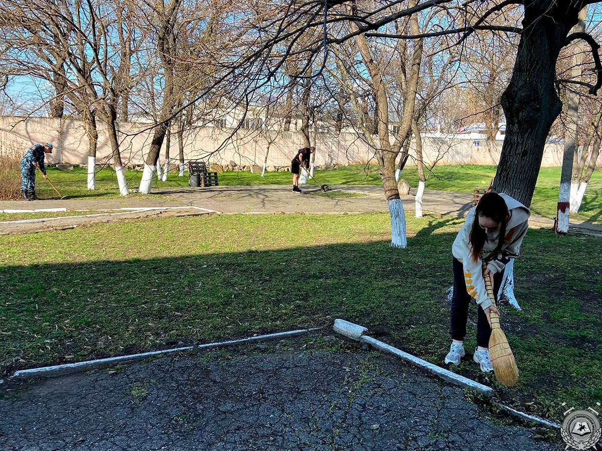В Тираспольском юридическом институте 27 марта закипела работа. Все трудились дружно и охотно. Навели порядок в помещениях и в расположении. На территории вуза посадили сосны, липы, дубы, чтобы воздух в районе города, пронизанном автодорогами, стал чище.
