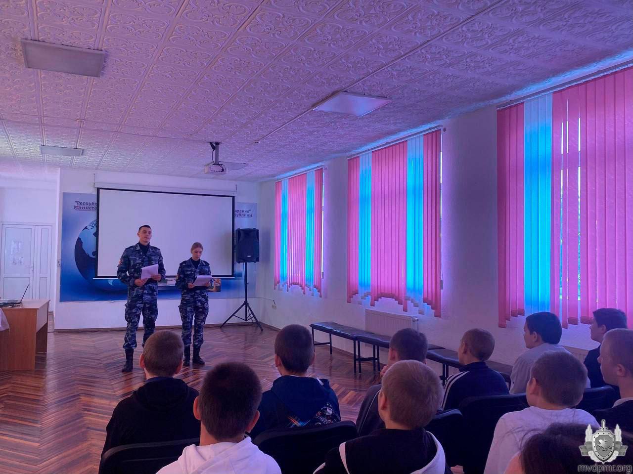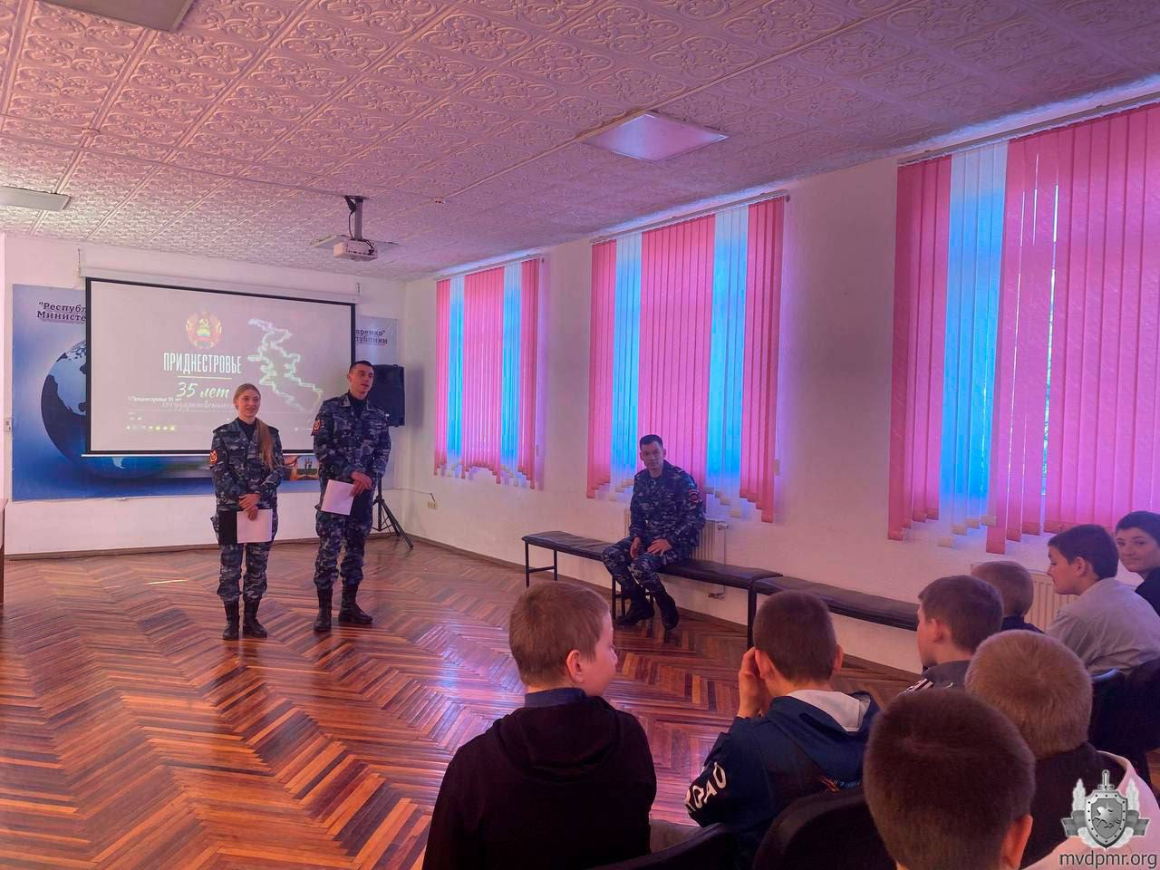Об истории Приднестровья курсанты Тираспольского юридического института МВД рассказали подросткам из РУВК имени А.С. Макаренко. Третьекурсники ведут патриотическую работу с молодёжью в рамках объявленного главой государства Года приднестровского народа.