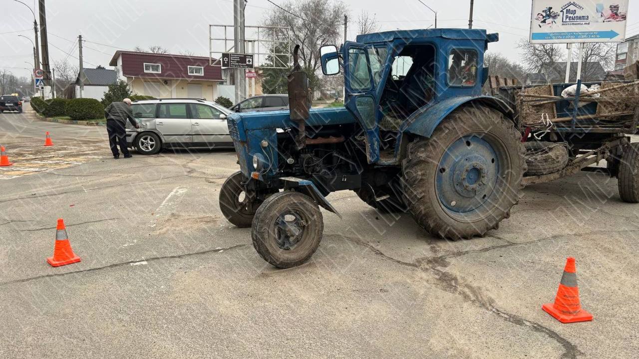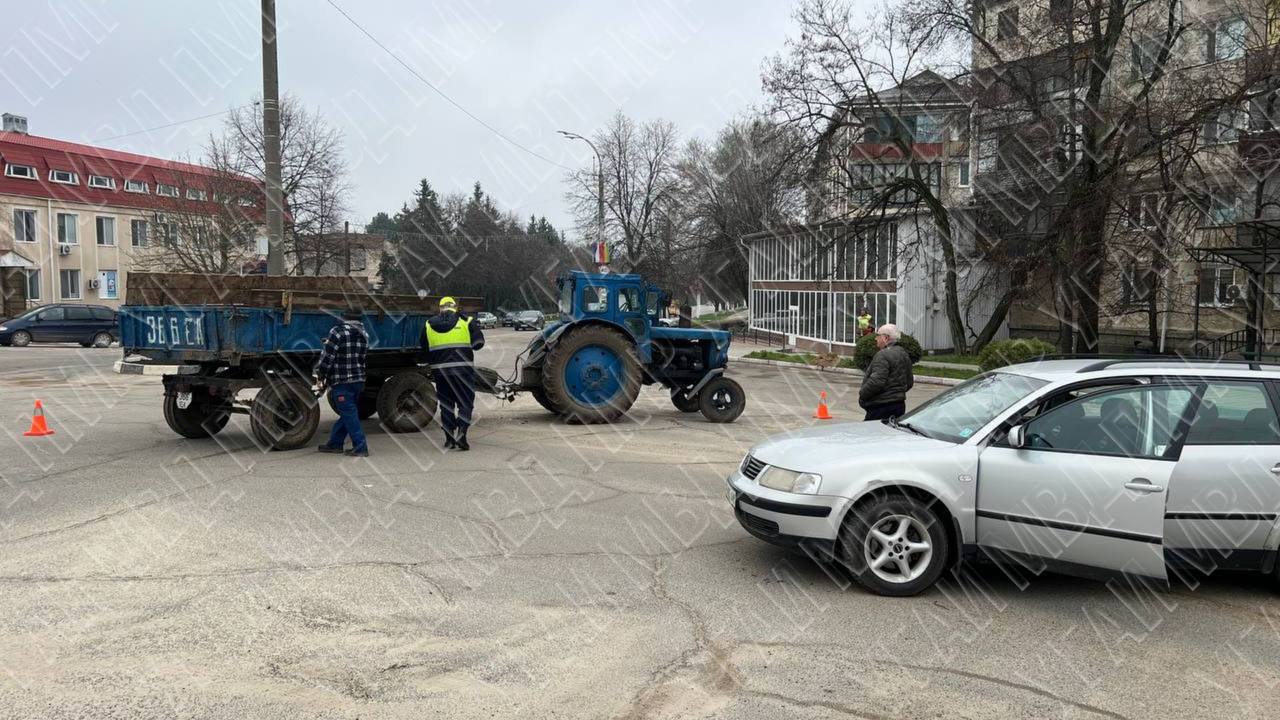 В Дубоссарах, на перекрёстке с круговым движением, на пересечении улиц Дзержинского и Космонавтов, 2 апреля столкнулись трактор и легковой автомобиль.