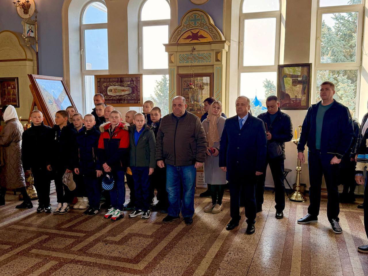 В соборной молитве вместе с прихожанами принял участие руководитель МВД Андрей Барабаш, а также подростки из РУВК имени А.С. Макаренко в сопровождении сотрудников закрытой школы.