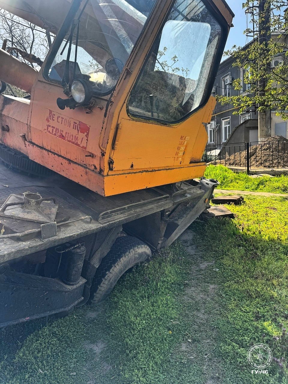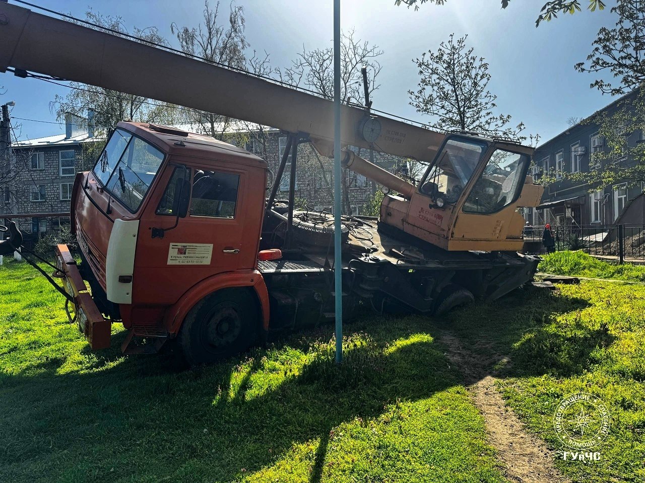 В Слободзее подъёмный кран «Тирастеплоэнерго» работал на улице Комсомольской и заехал в яму. Тяжёлую технику наклонило на бок, заднее колесо ушло под землю.