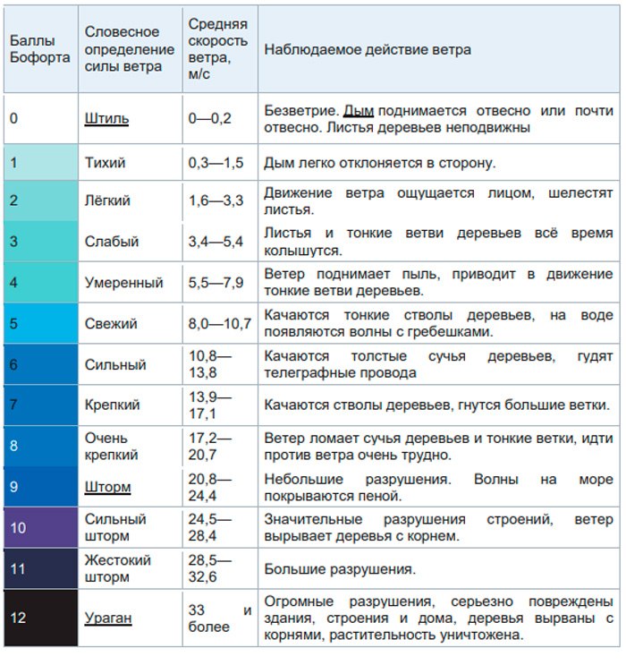 По шкале можно приблизительно оценить силу ветра по его воздействию на предметы на земле или по волнению на открытом море.
