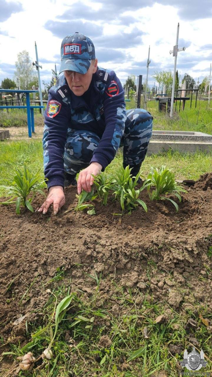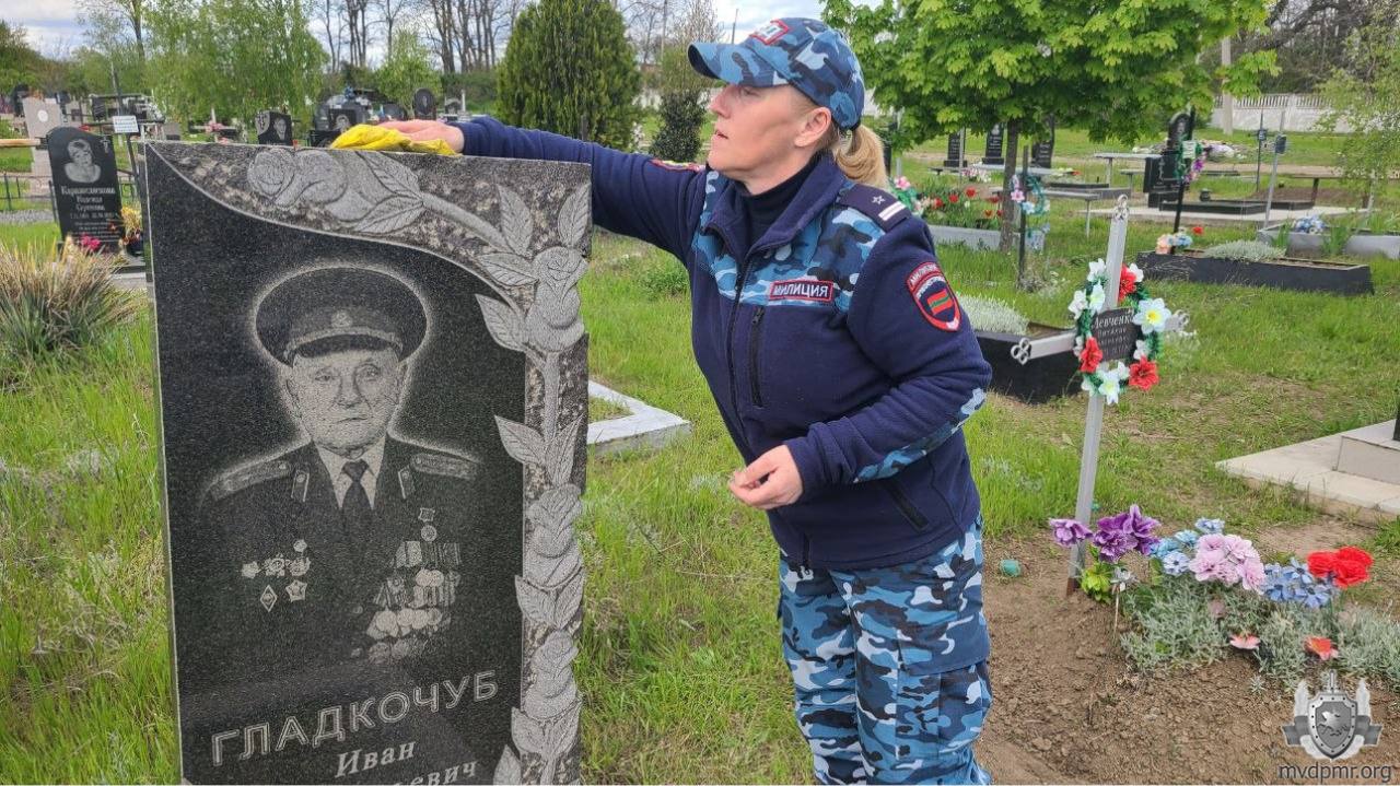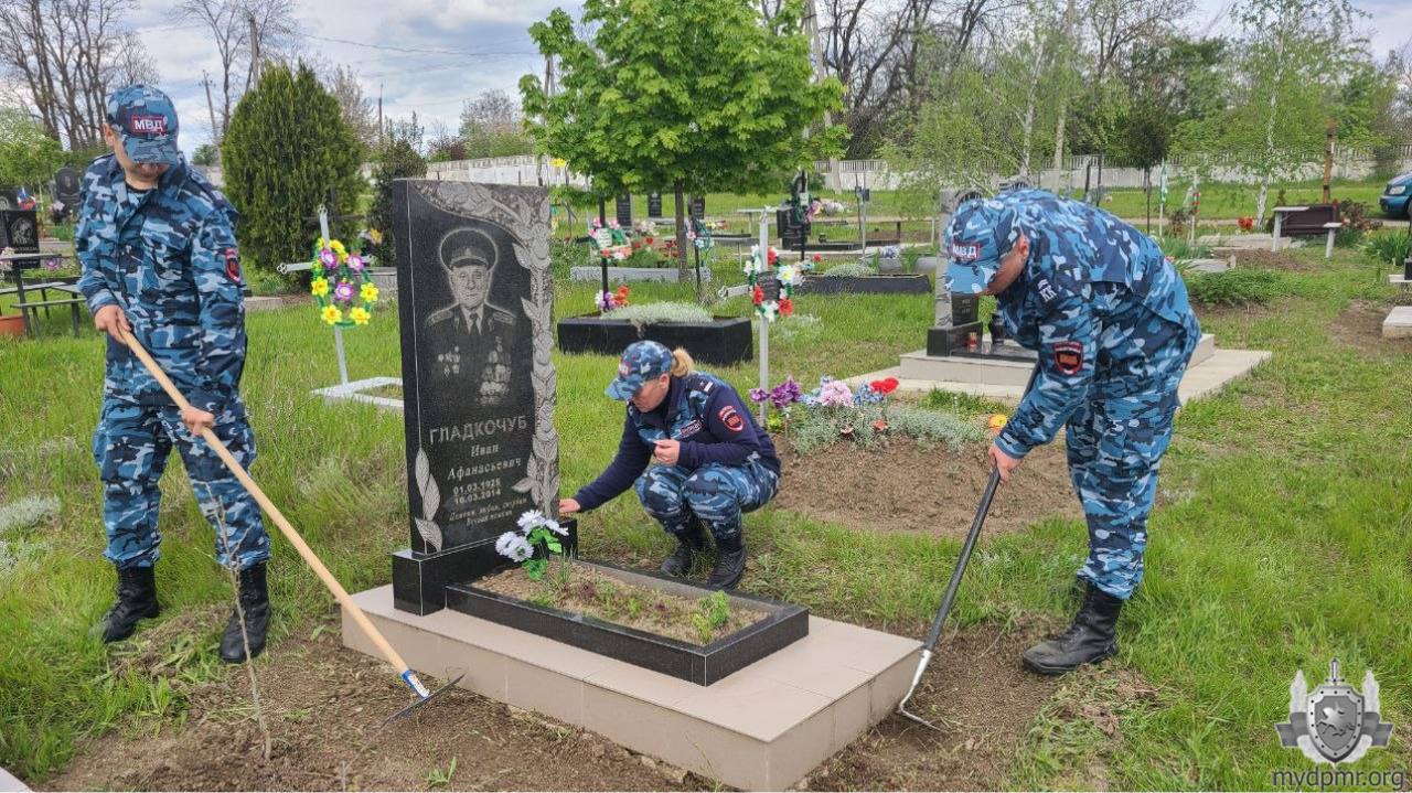 В преддверии Дня Великой Победы сотрудники УВД г. Бендеры совместно с воспитанниками Республиканского кадетского корпуса МВД привели в порядок могилы ветеранов Великой Отечественной войны и органов внутренних дел. С захоронений убрали мусор и сухую листву, очистили и вымыли памятники, высадили у надгробий весенние цветы.
