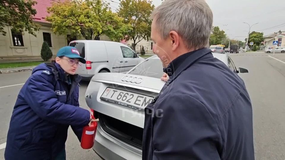Инспекторы Госпожнадзора не только проверяют наличие огнетушителей, но и дают водителям советы, как использовать их эффективнее и безопаснее.© Пресс-центр МВД ПМР
