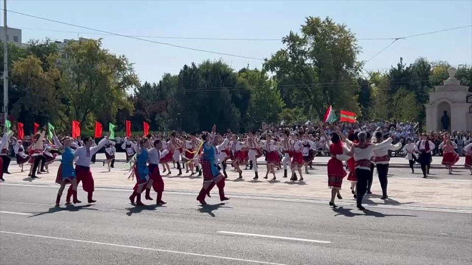 На главной площади столицы - художественно-хореографическая постановка. Участвуют кадеты, суворовцы, творческие коллективы республики в честь ее 35-летия. Общая идея - показать единство многонационального приднестровского народа. Участники исполняют...