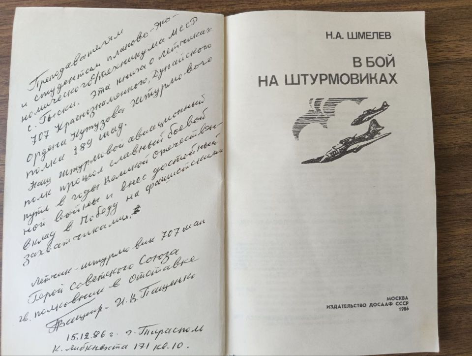 "В этот день в небе было тесно. Сотни истребителей, штурмовиков, бомбардировщиков непрерывно висели над передним краем противника ... За первый день наступательной операции полк сделал почти сто боевых вылетов", — вспоминает автор книги, Герой Советского Союза Николай Шмелёв.
