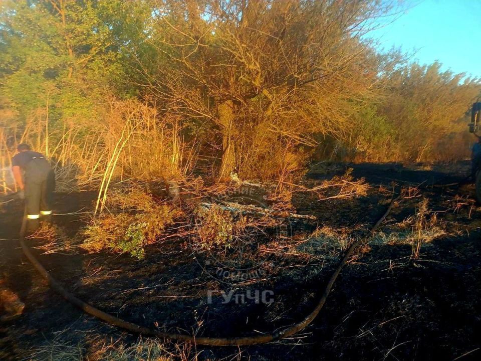 На территории старого пастбища загорелись сухостой, пни и кустарник, огонь охватил около 20 га. Всего одним расчётом удалось остановить пожар прямо у границы леса. Жилым домам ничего не угрожает.