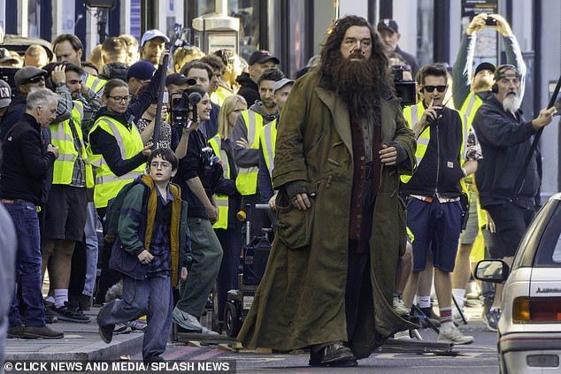 На снимках – «мальчик, который выжил» и великан Хагрид гуляют по Лондону. Может идут в «Косой переулок»?