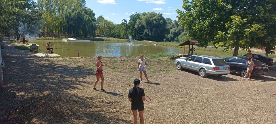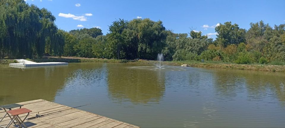 Что может быть лучше уютного зелёного уголка с выходом к Днестру, спортплощадкой, тандыром, мангалом, топчанами для загарания под уже не слишком жгучим позднеавгустовским солнцем... А ещё здесь есть рукотворное озерцо с фонтаном посередине. В нём ловятся караси. карпы и даже небольшие сомы.