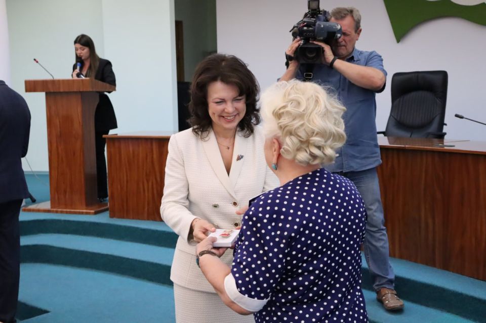 Награды горожанам вручили глава столицы Илона Тюряева и Председатель Тираспольского городского Совета Вадим Дони.