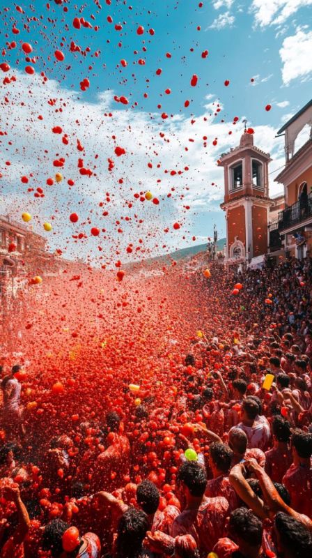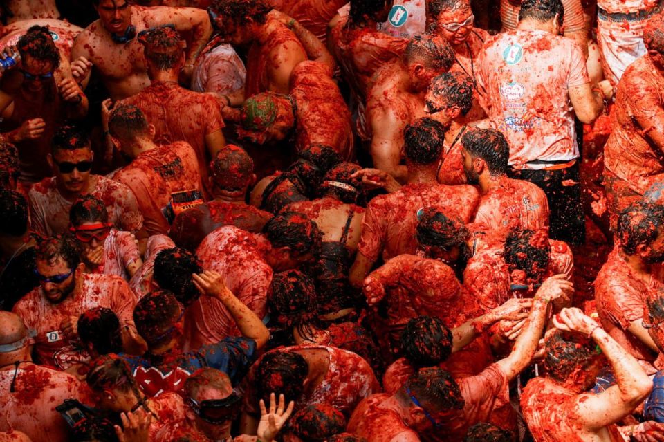 Юбилейный фестиваль La Tomatina собрал 22 тысячи человек в городе Буньоль. Участники битвы на протяжении часа закидывали друг друга помидорами, превратив улицы в реки из томатной пасты.