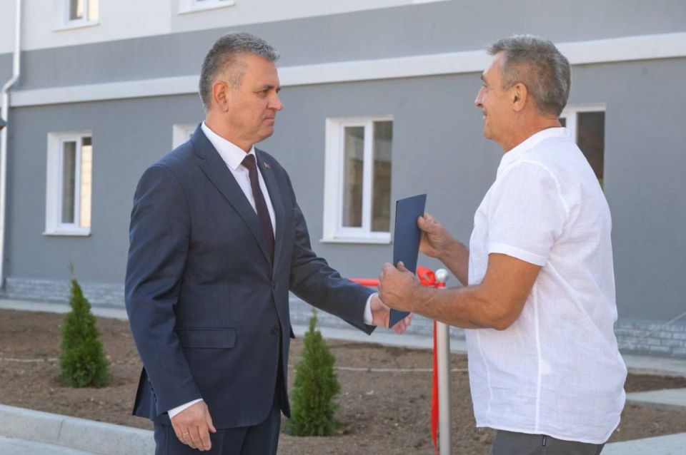 Ключи новосёлам вручили торжественно. Поздравить приехал Президент ПМР Вадим Красносельский. Он напомнил: с 2018 года по программе переоборудования в Приднестровье сдано 24 объекта — это около 800 квартир.