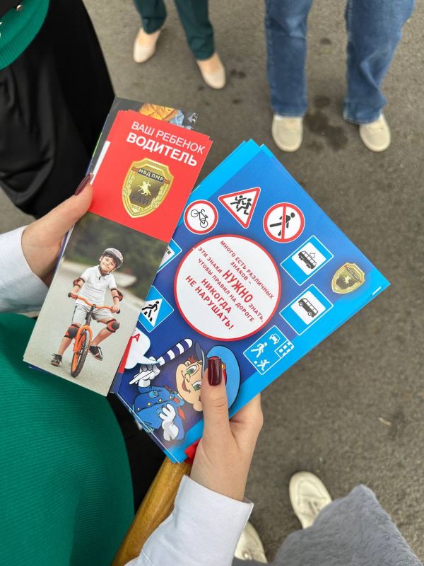 Девятиклассницы из Тирасполя Анна Андрус и Елизавета Андреева перед линейкой помогали сотрудникам ГАИ. Раздавали памятки с правилами дорожного движения.