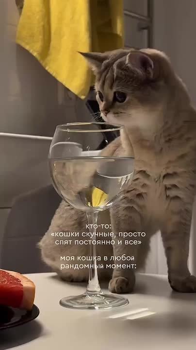 Кошка-сомелье — новая звезда соцсетей. Милаха пьет воду из бокала, элегантно придерживая его пушистой лапкой.