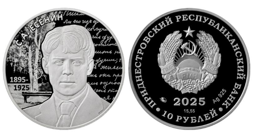 В Приднестровье вышла новая памятная монета номиналом 10 рублей к 130-летию Сергея Есенина