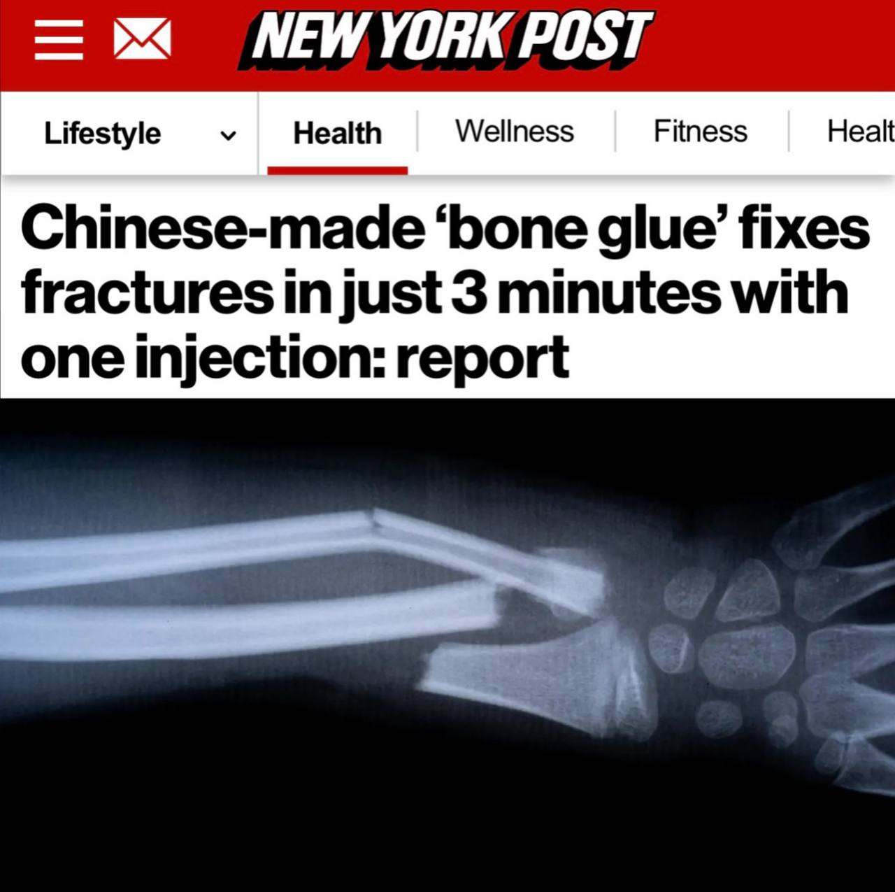 «Костный клей» устраняет переломы всего за 3 минуты с помощью одной инъекции»: В Китае разработали суперклей для костей – он заживляет переломы за 3 минуты.