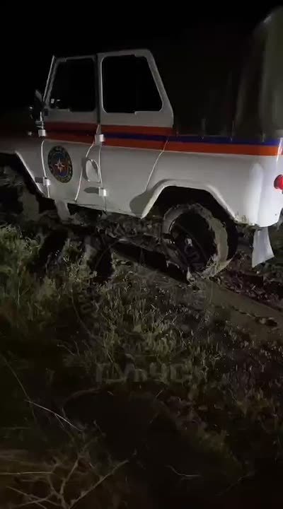 Пока приднестровцы сидели ночью по домам, бобик спасателей тянул тросом машину, застрявшую за городом в грязи.