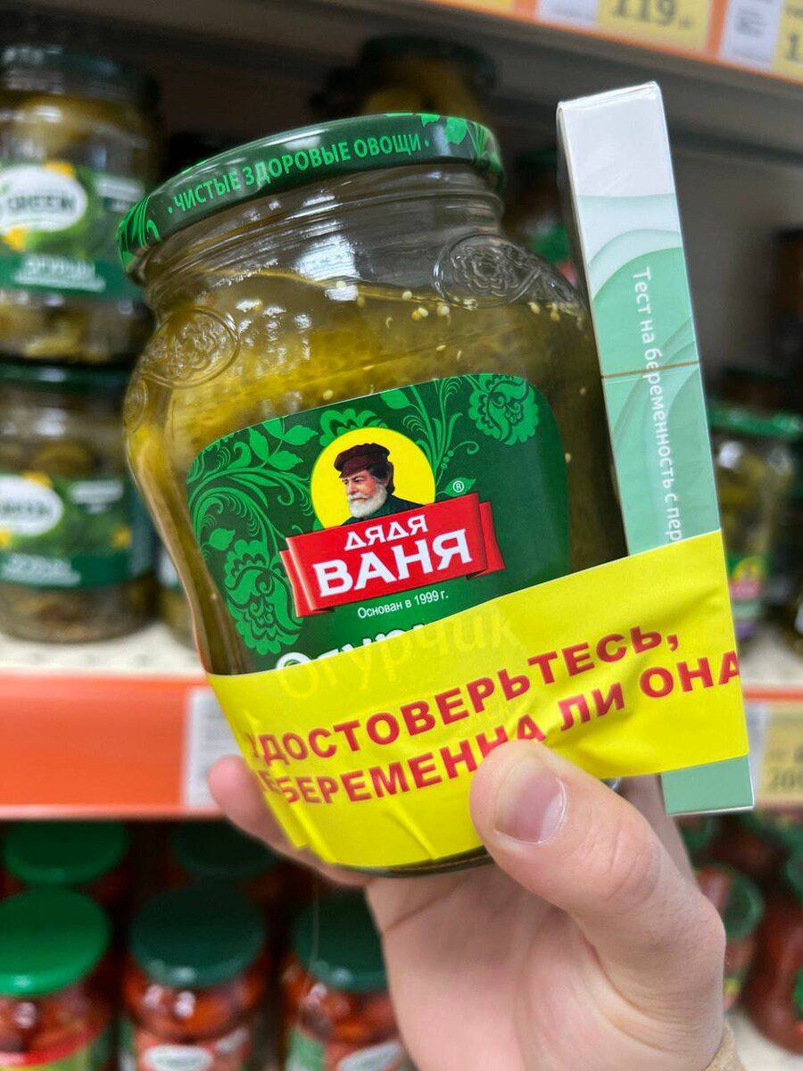 На полках российских магазинов появились соленые огурцы в комплекте с тестами на беременность
