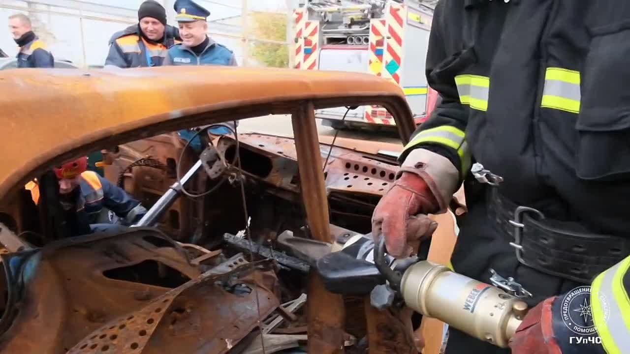 Руководители подразделений ГУпЧС прошли практическую подготовку по работе с гидравлическим инструментом — незаменимым при ДТП и завалах.
