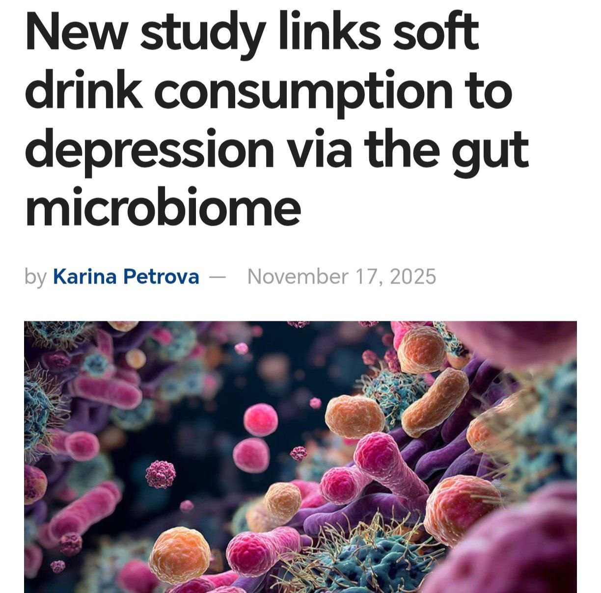 Газировки вроде Coca-Cola, Pepsi и энергетики снижают разнообразие микробов в кишечнике и провоцируют рост бактерий Eggerthella — их связывают с появлением депрессии у человека