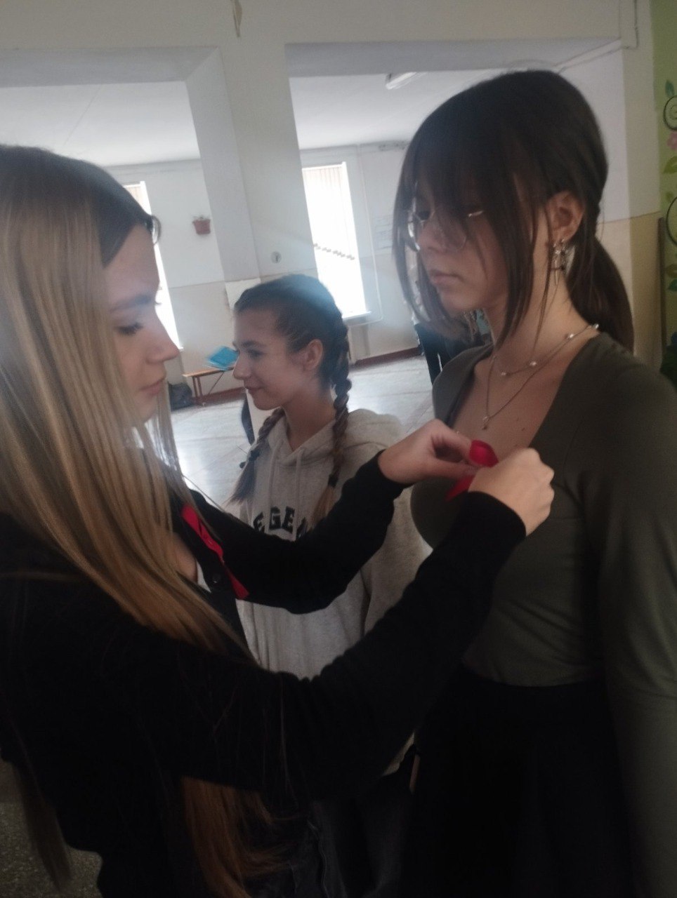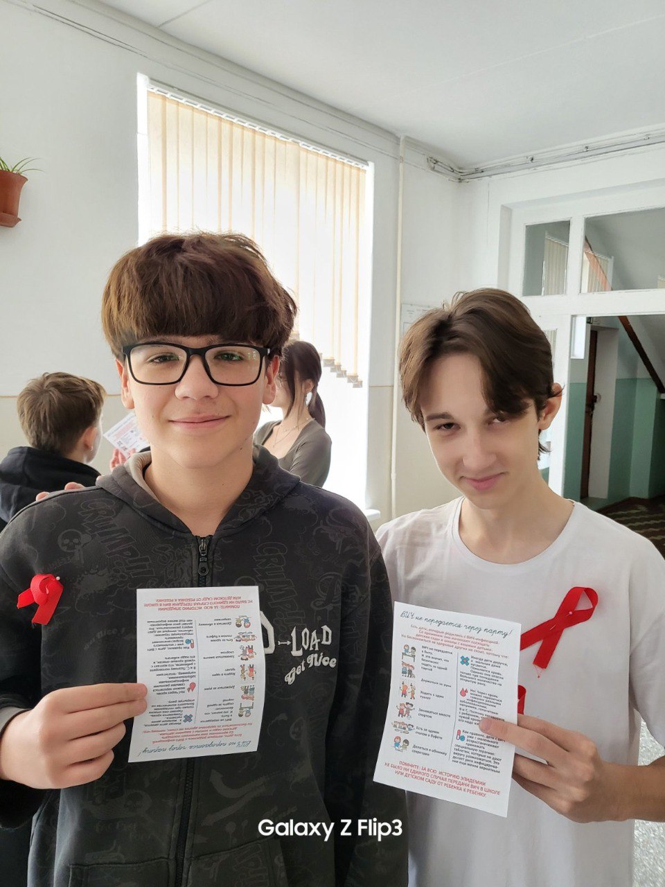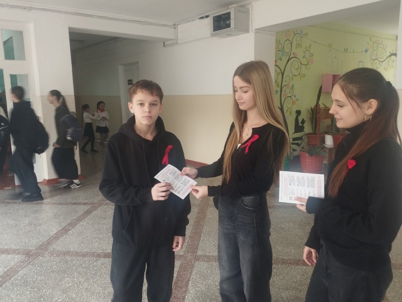 На мероприятии добровольцы-волонтёры добровольческого движения из старших классов активно взаимодействовали с учащимися, проводили разъяснительные беседы и использовали различные формы популяризации темы. Они прикрепляли красные ленточки – международный символ борьбы со СПИДом – к одежде участников, распространяли тематические листовки, содержащие важную информацию о путях заражения, профилактике, необходимости регулярного тестирования и возможности получить помощь.