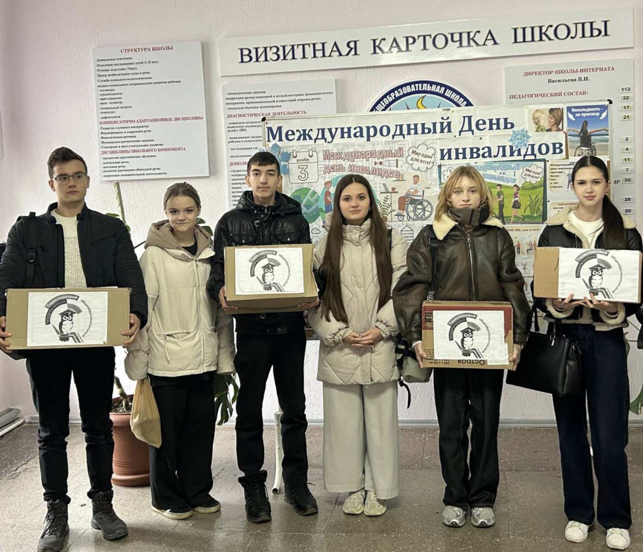 И символично, что именно в День добровольца учащиеся 10 «Б» класса — участники Международного конкурса «Евразия. Классная дружба» — лично передали часть подарков в специальную (коррекционную) школу-интернат I, II и V видов.