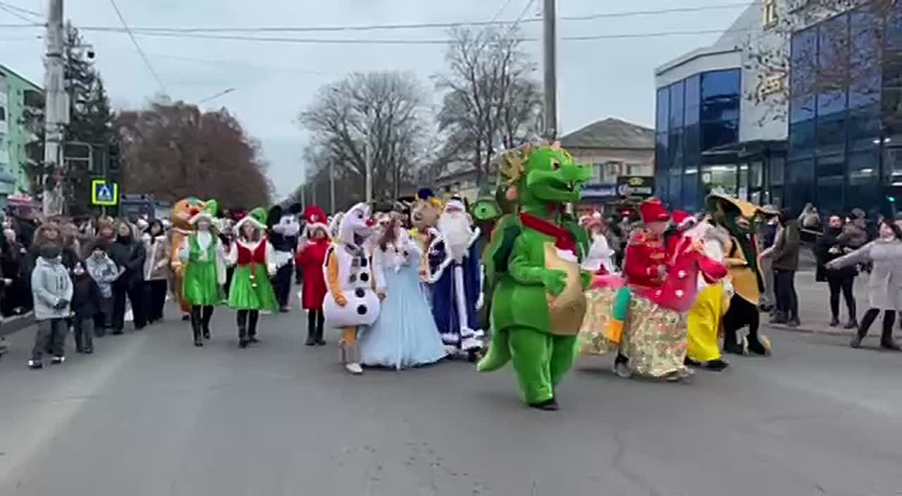 По традиции открытие новогодней ёлки в Рыбнице начинается с торжественного шествия новогодних персонажей. И возглавил колонну сказочных героев символ наступающего 2026 года - живая лошадка.