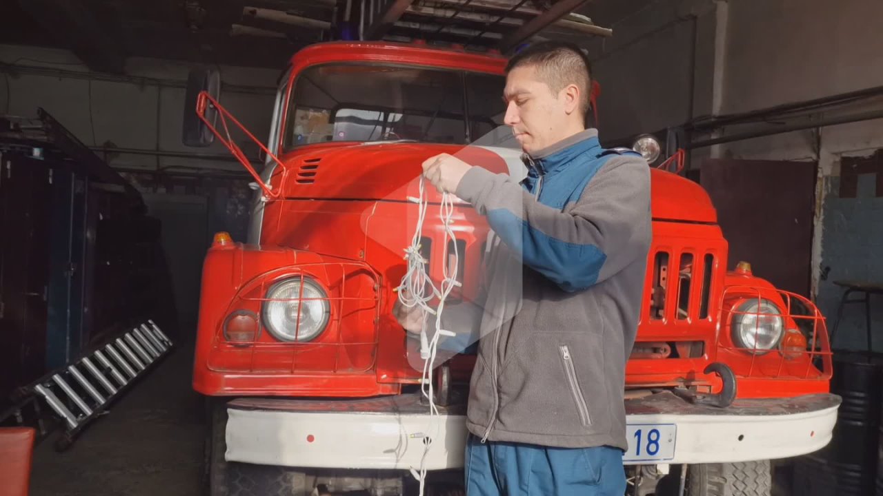 Пожарные не только ёлки, но и свои машины гирляндами украшают