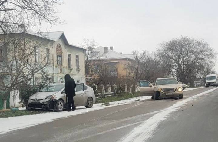 «Приус» и «Мерседес» стукнулись в Суклее. На дороге сейчас очень скользко.